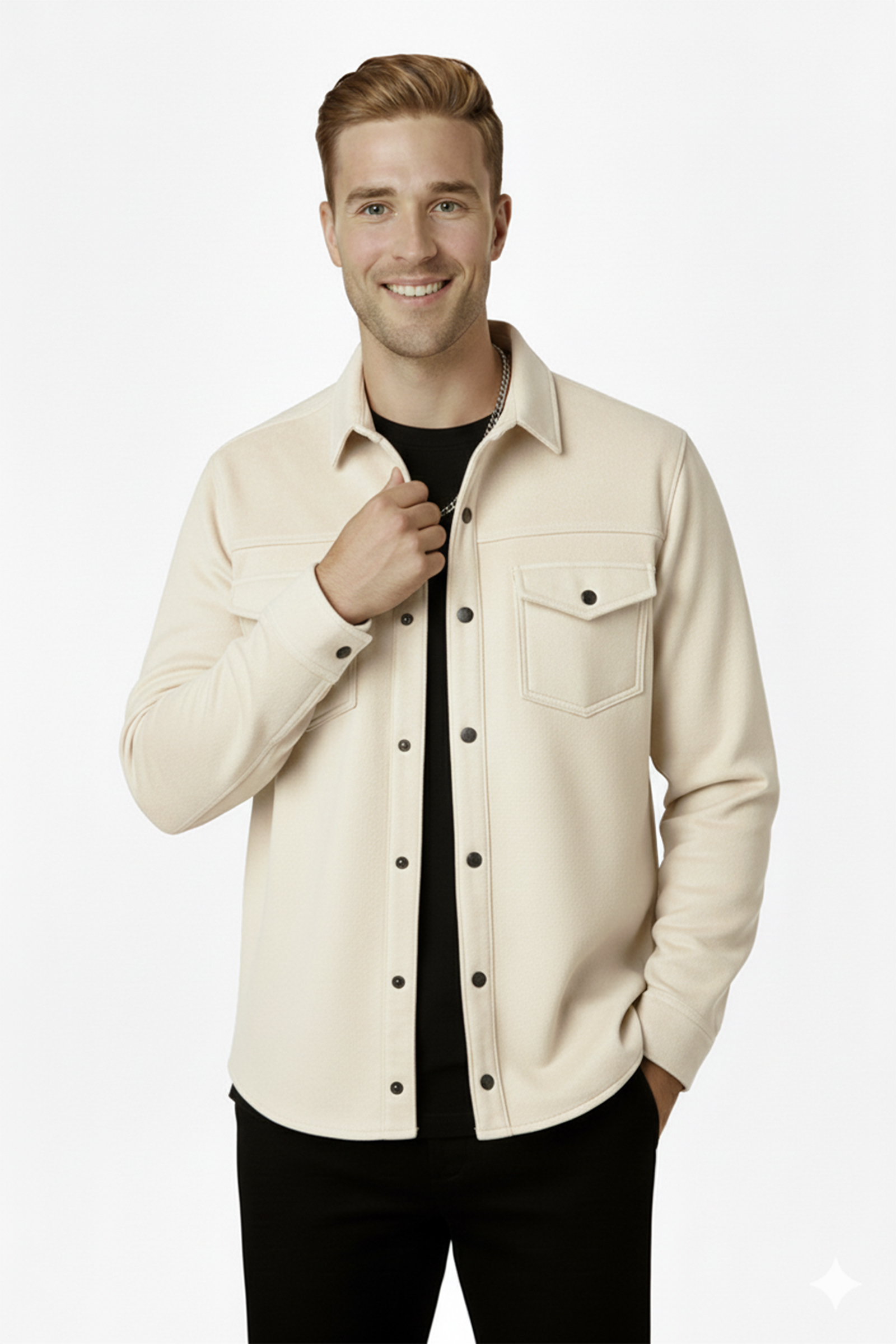 DeepSEA Krem Rahat Kesim Süet Dokulu Çıtçıtlı Erkek Gömlek – Büyük Beden Gömlek 2302329
