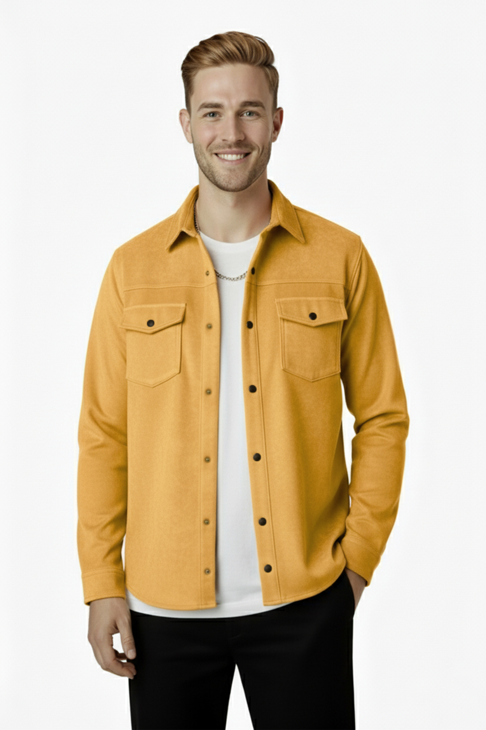 DeepSEA Hardal Sarısı Rahat Kesim Süet Dokulu Çıtçıtlı Erkek Gömlek – Büyük Beden Gömlek 2302329
