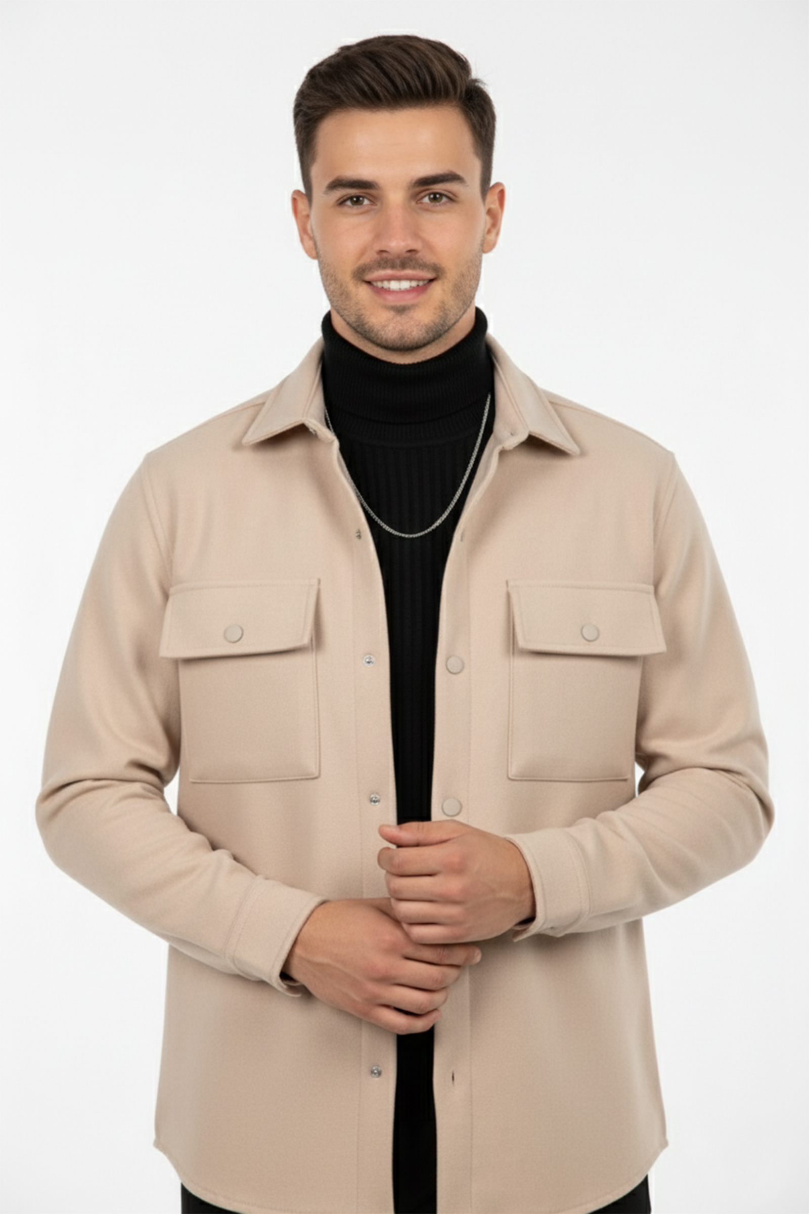 Yumuşak kaşe dokusu, rahat kesimi ve fonksiyonel kapaklı cepleriyle soğuk havalarda sıcak tutan ideal bir dış giyim parçasıdır.
