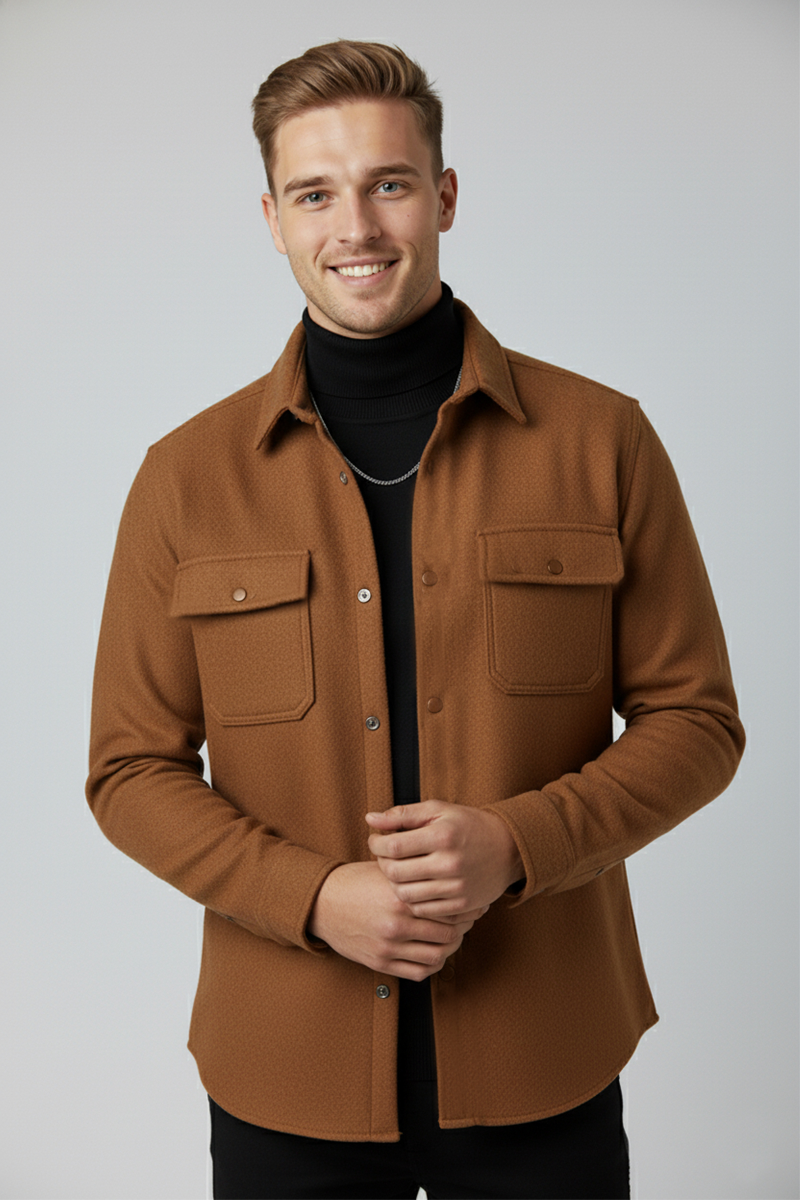 DeepSEA Kahve Dar Kesim Cepleri Kapaklı Çıtçıtlı İnce Kaşe Ceket Mont 2500559