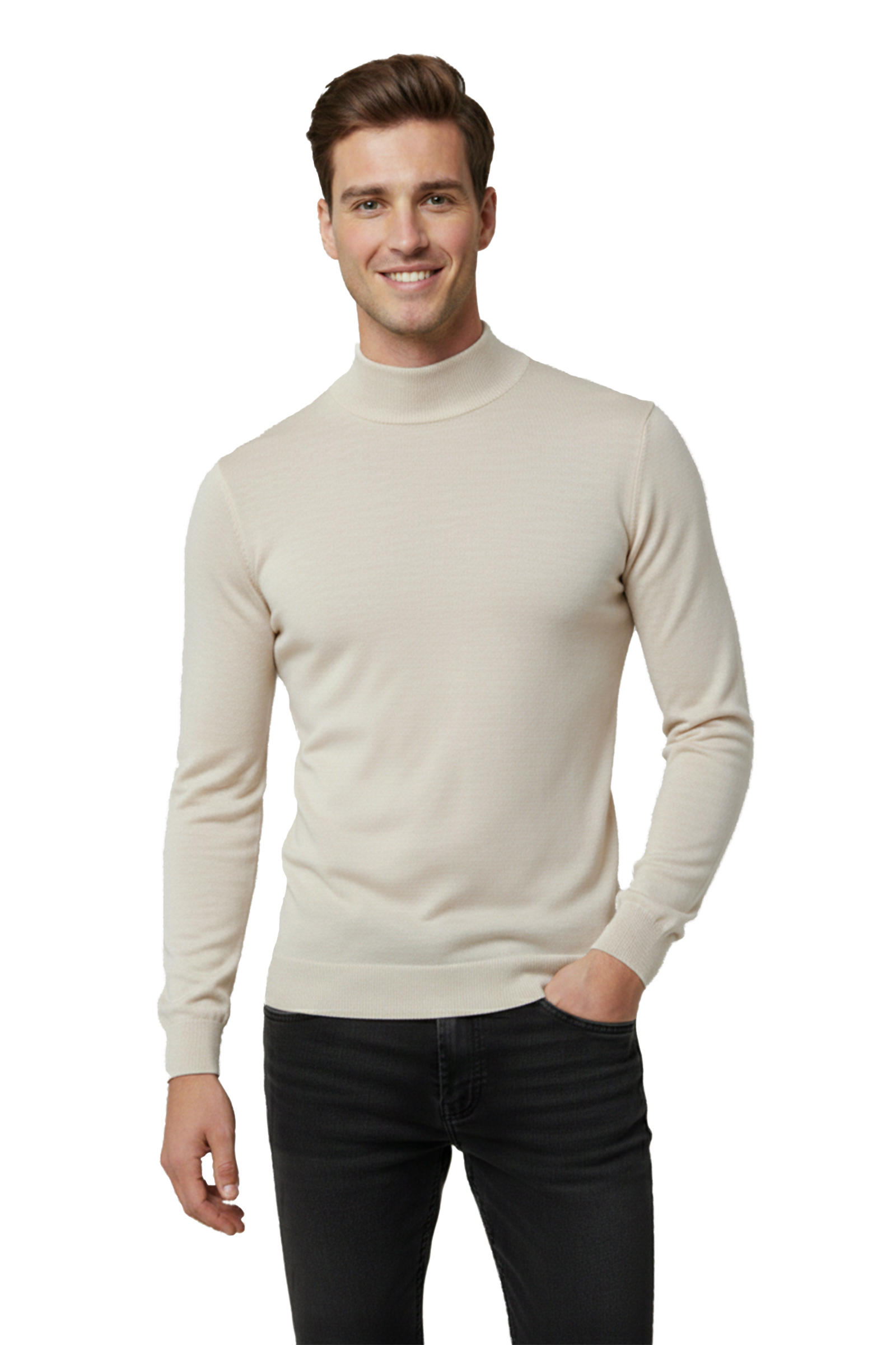 DeepSEA Bej Slim Fit Yarım Balıkçı Yaka Likralı İnce Triko Erkek Yarım Boğazlı Kazak 2505502
