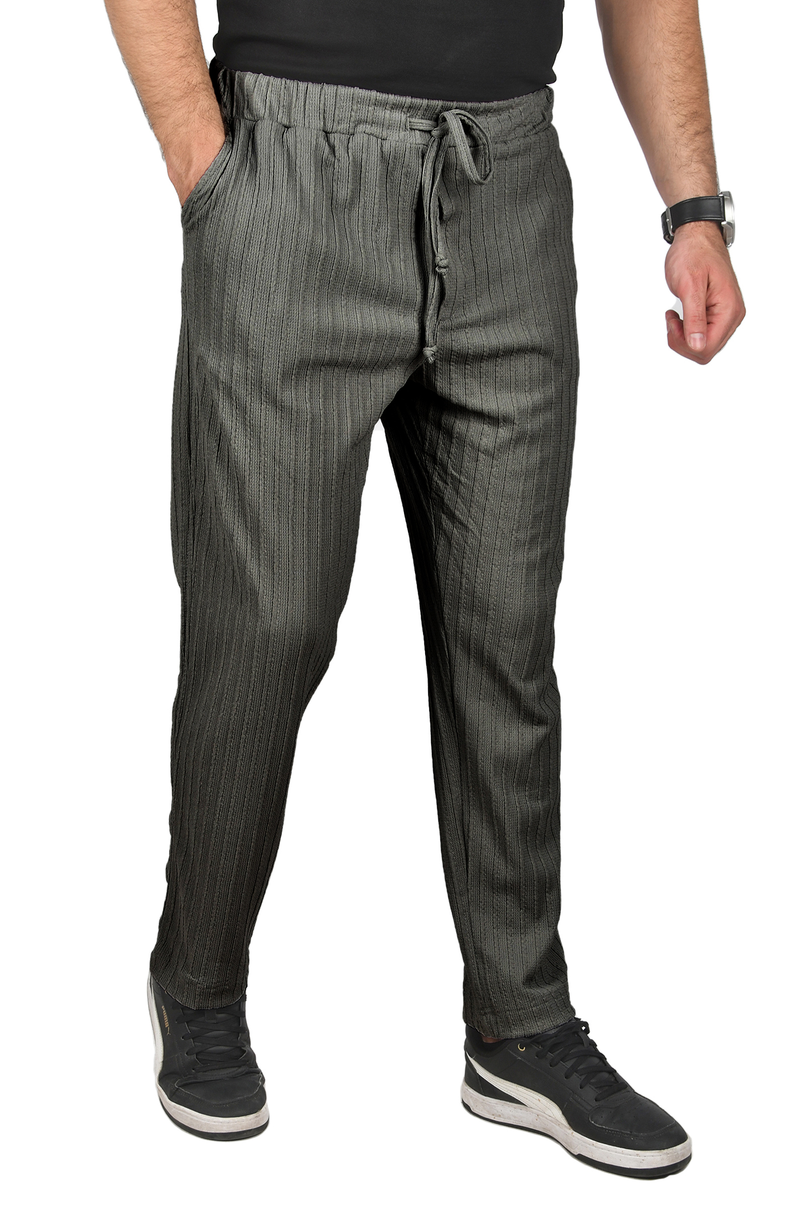İndirimli Fiyat! DeepSEA Beli Lastikli Bağcıklı Kırışmayan Süet Kumaş Rahat Kesim Dar Paça Spor Pantolon 2505556 Büyüt