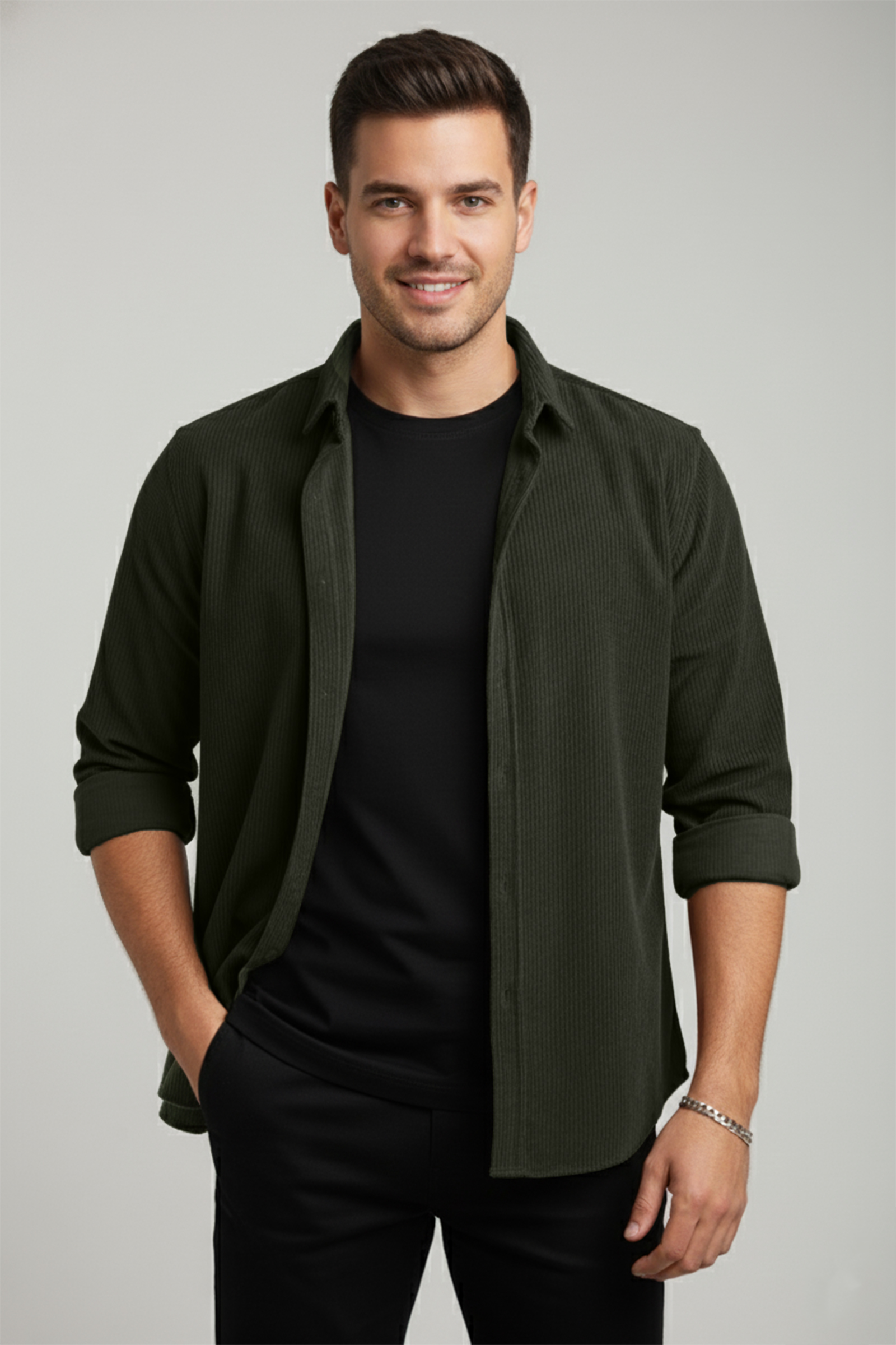 DeepSEA Yeşil Fitilli Kadife Gömlek 2600758