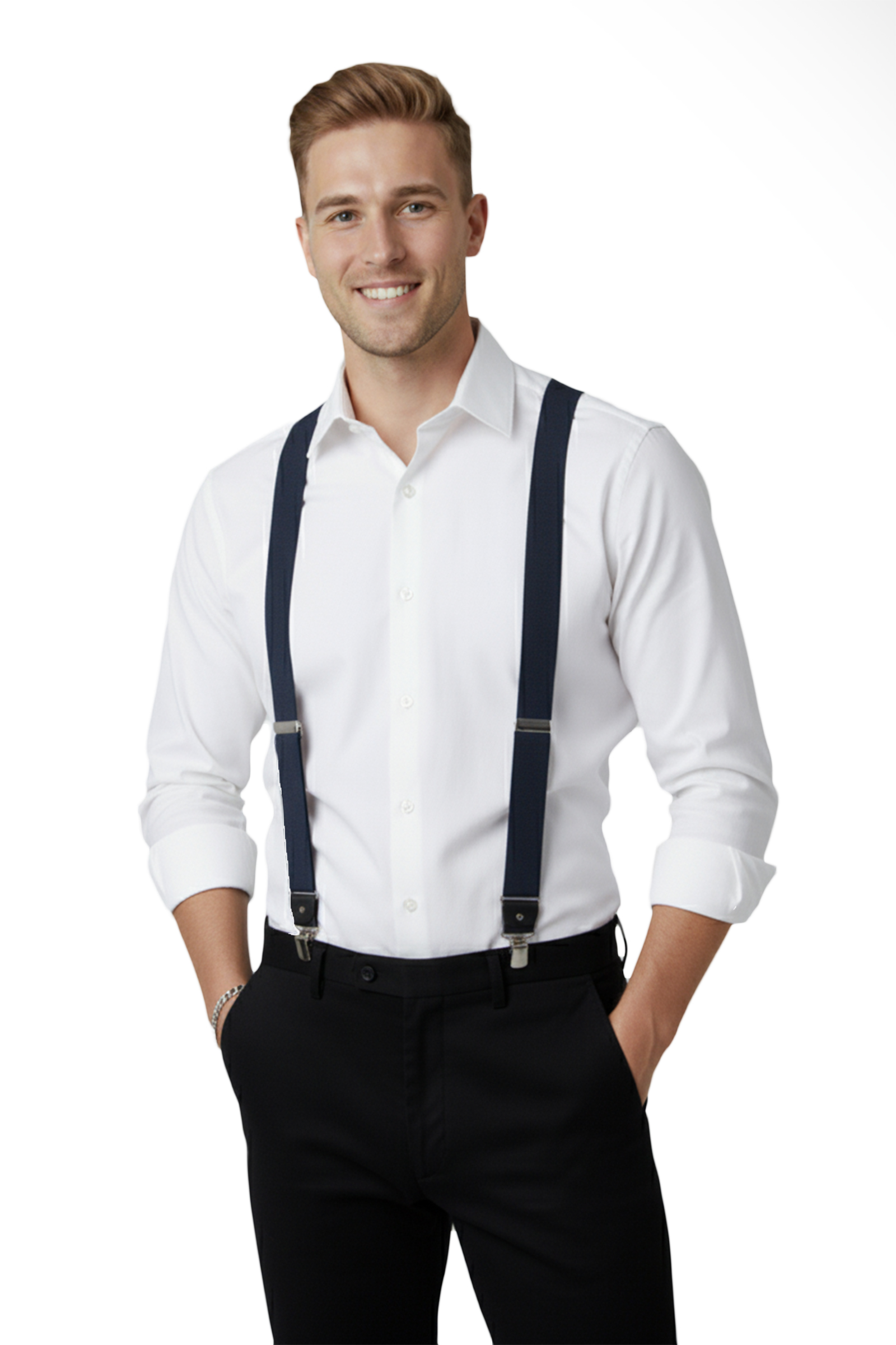 DeepSEA Lacivert Unisex Derili Esneyebilen Lastik Ayarlanabilir Metal Klipsli Pantolon Askısı 2602025