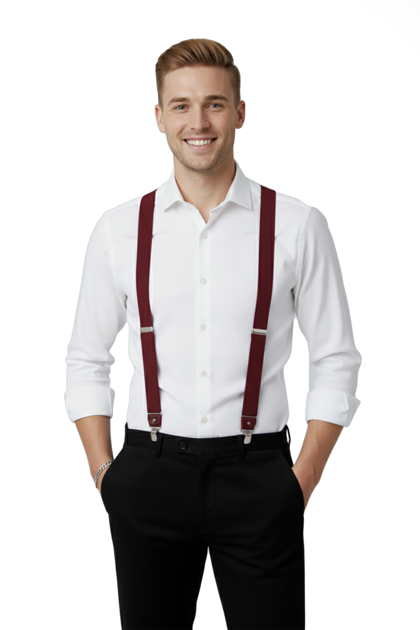 DeepSEA Bordo Unisex Derili Esneyebilen Lastik Ayarlanabilir Metal Klipsli Pantolon Askısı 2602025