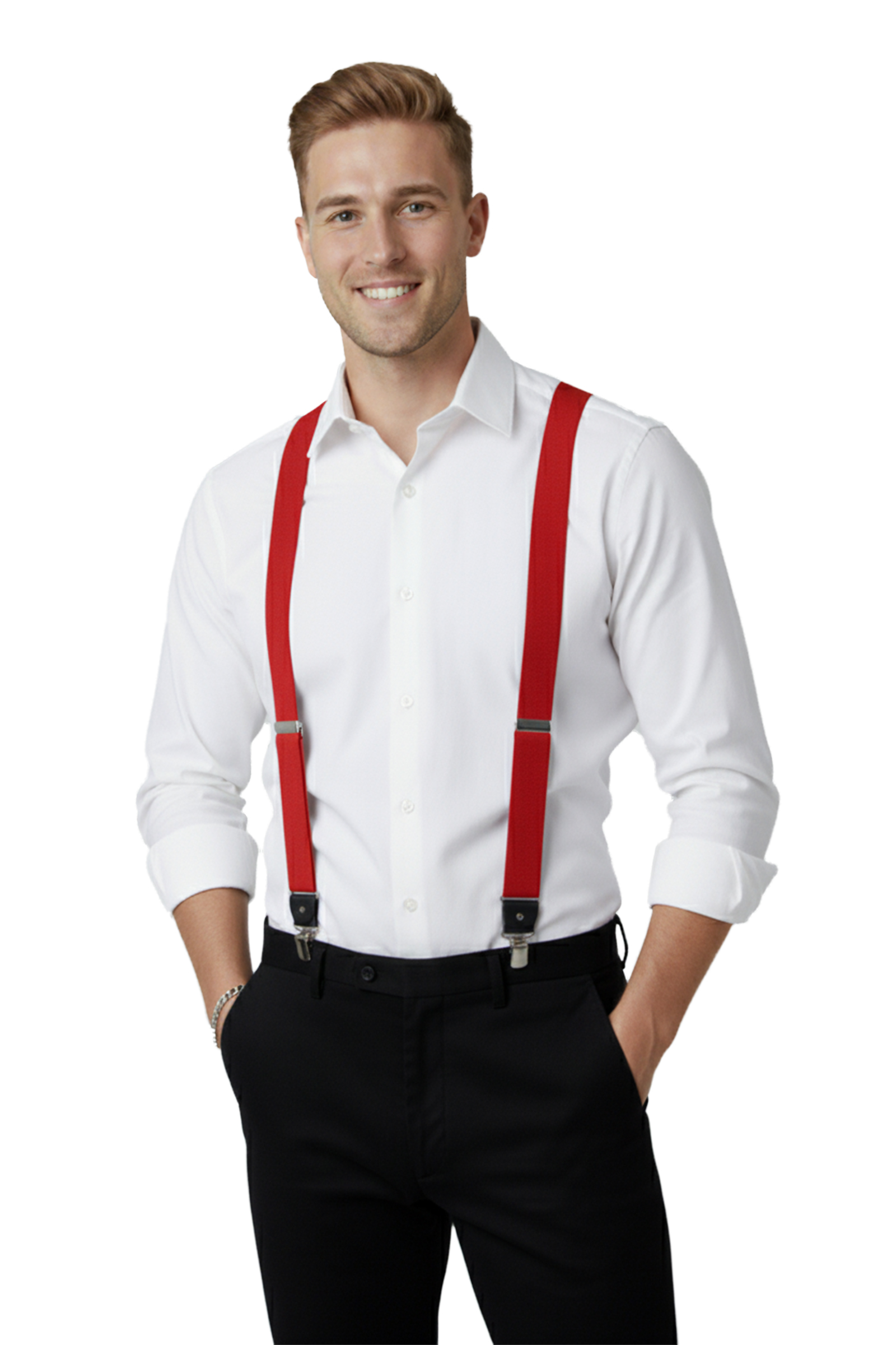 DeepSEA Kırmızı Unisex Derili Esneyebilen Lastik Ayarlanabilir Metal Klipsli Pantolon Askısı 2602025