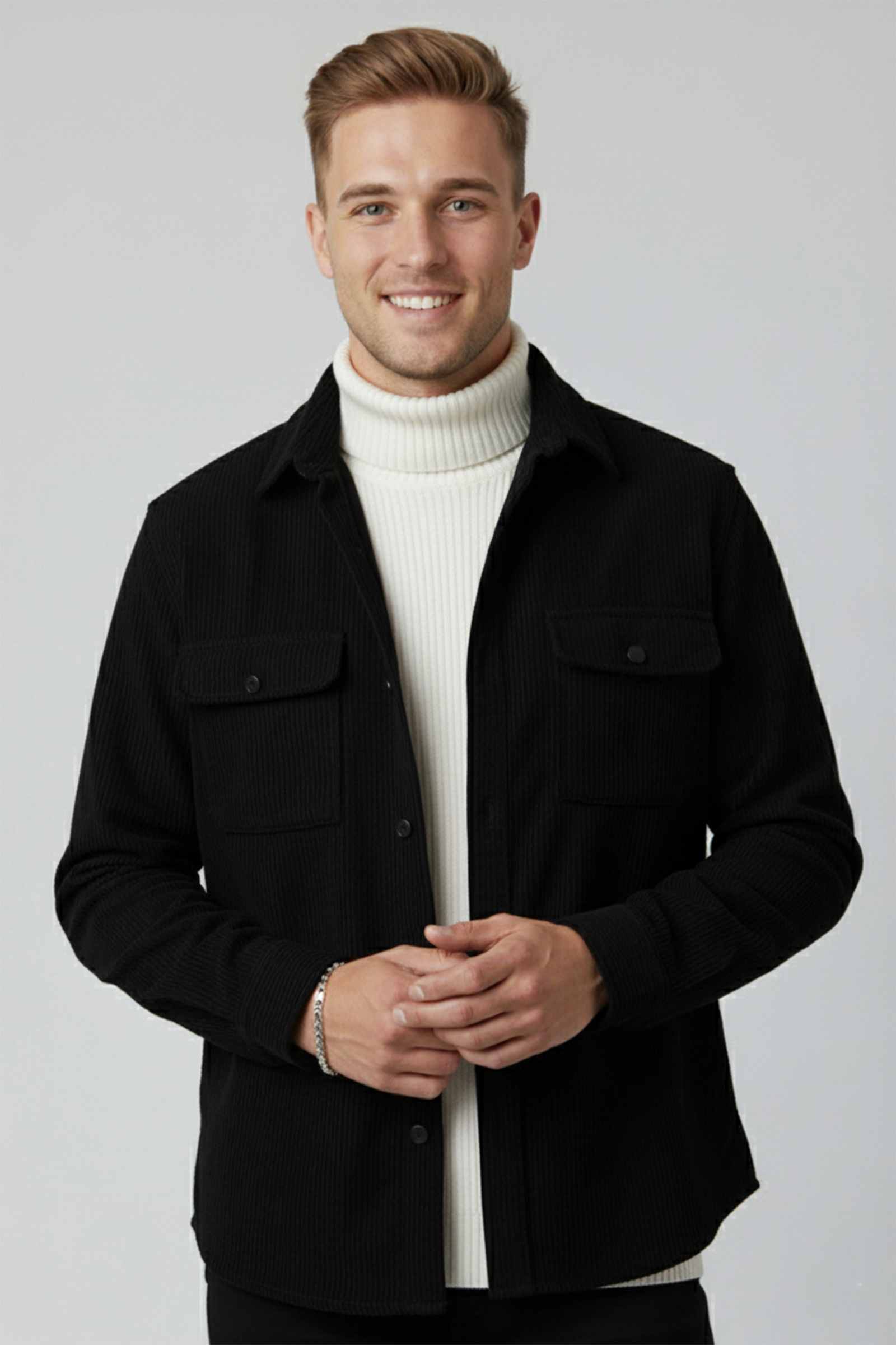 DeepSEA Siyah Cepli Likralı Kadife Kumaş Rahat Kesim Erkek Gömlek – Yumuşak Dokulu, Şık Tasarım Gömlek 2600759