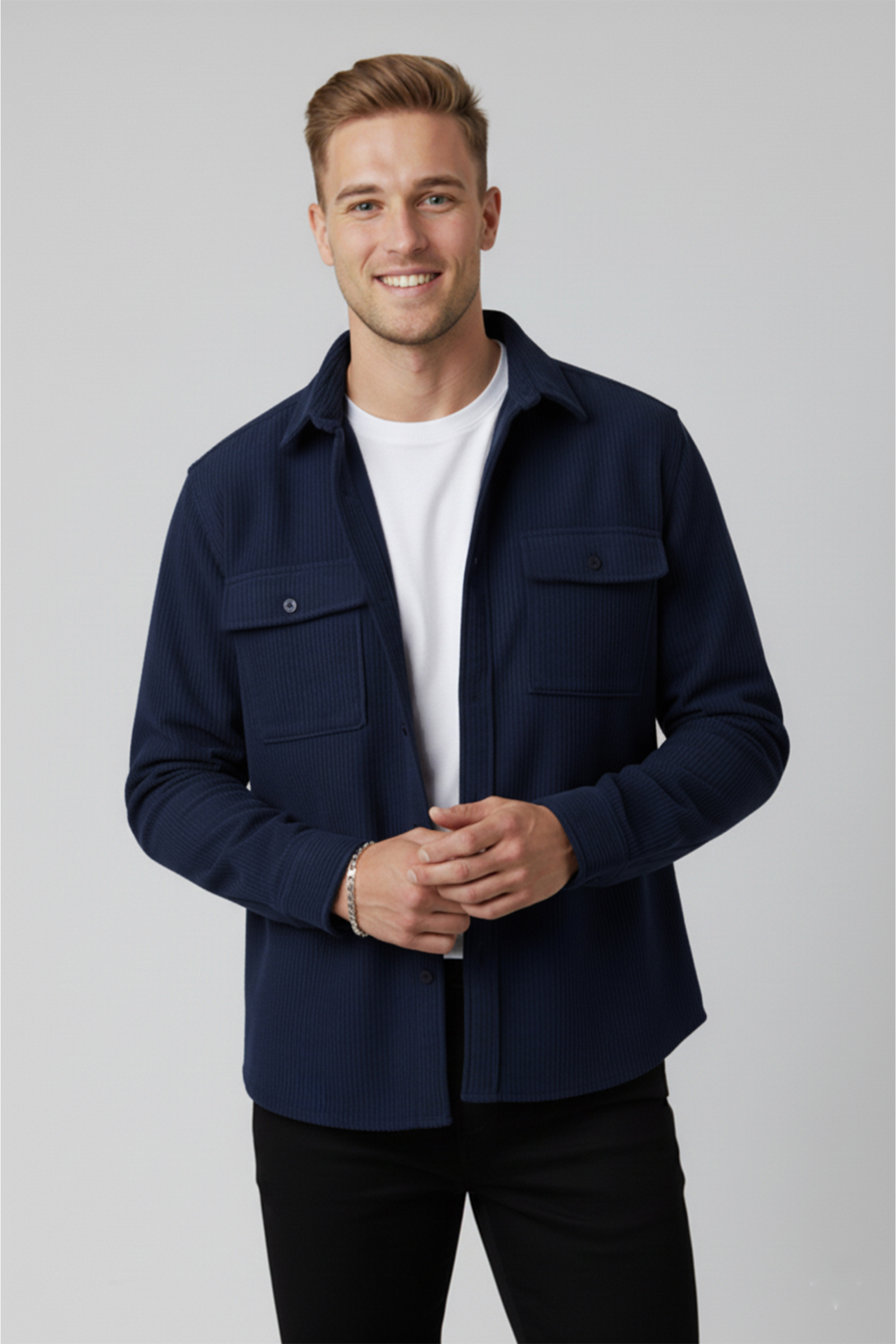 DeepSEA’nin fitilli kadife kumaştan üretilen bu cepli gömleği, yumuşak dokusu ve rahat kesim kalıbı ile gün boyu konfor sağlar.