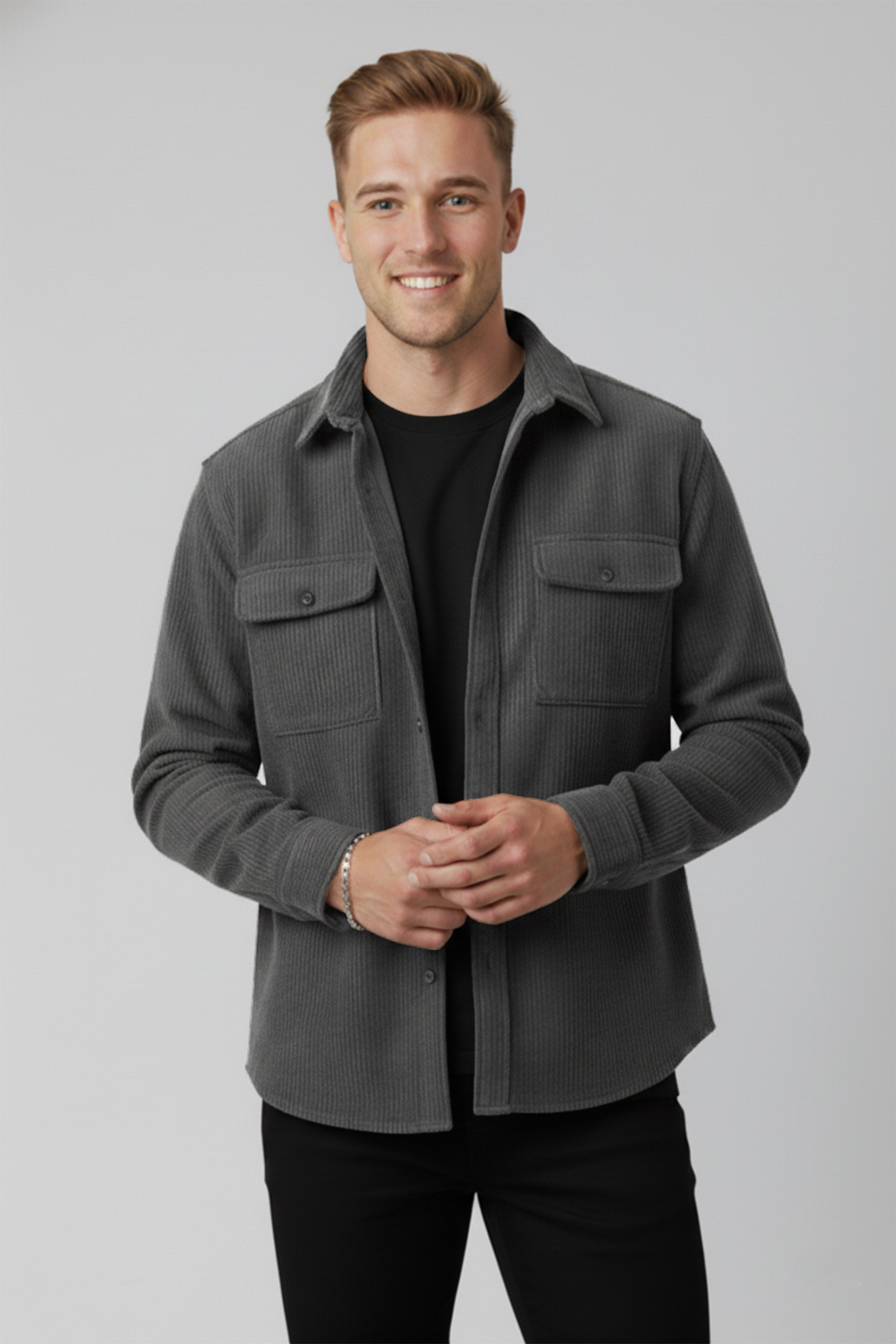 DeepSEA’nin fitilli kadife kumaştan üretilen bu cepli gömleği, yumuşak dokusu ve rahat kesim kalıbı ile gün boyu konfor sağlar.