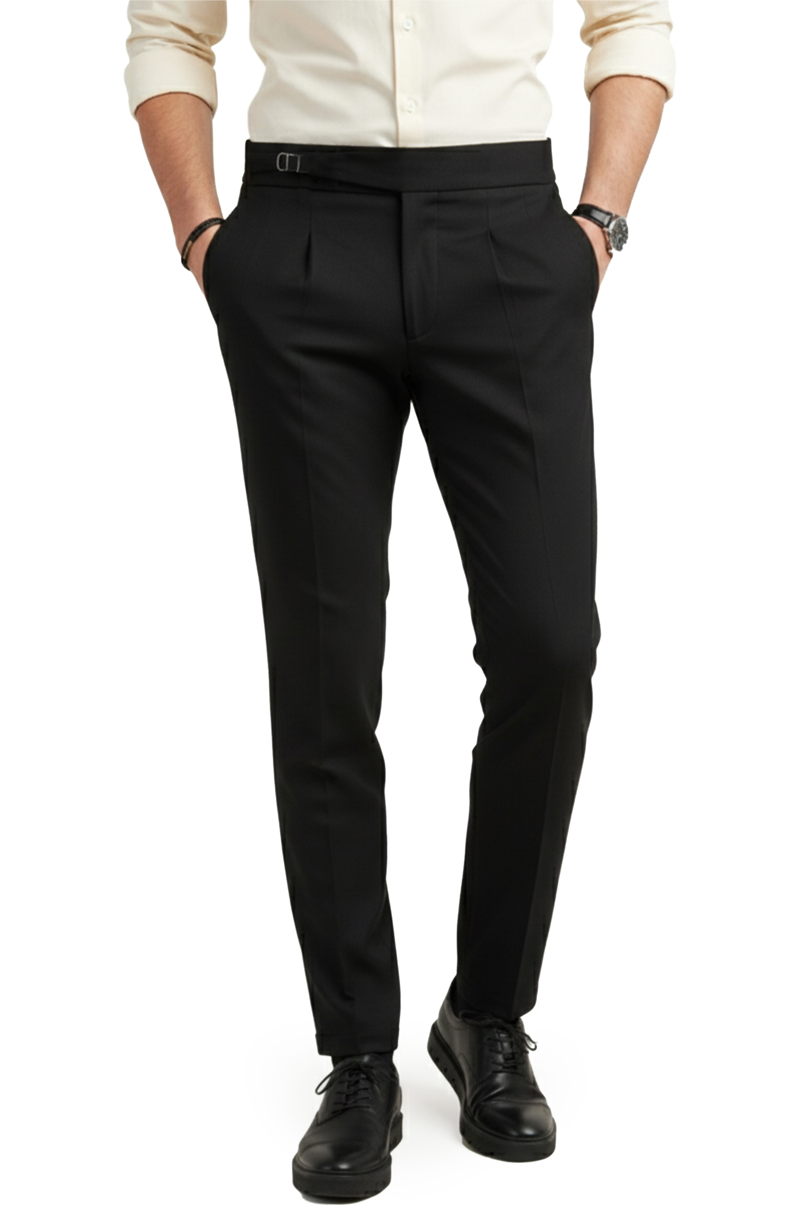 DeepSEA Siyah Erkek Likralı İtalyan Kesim Pileli Kemer Tokalı Şık Kumaş Pantolon 2601020