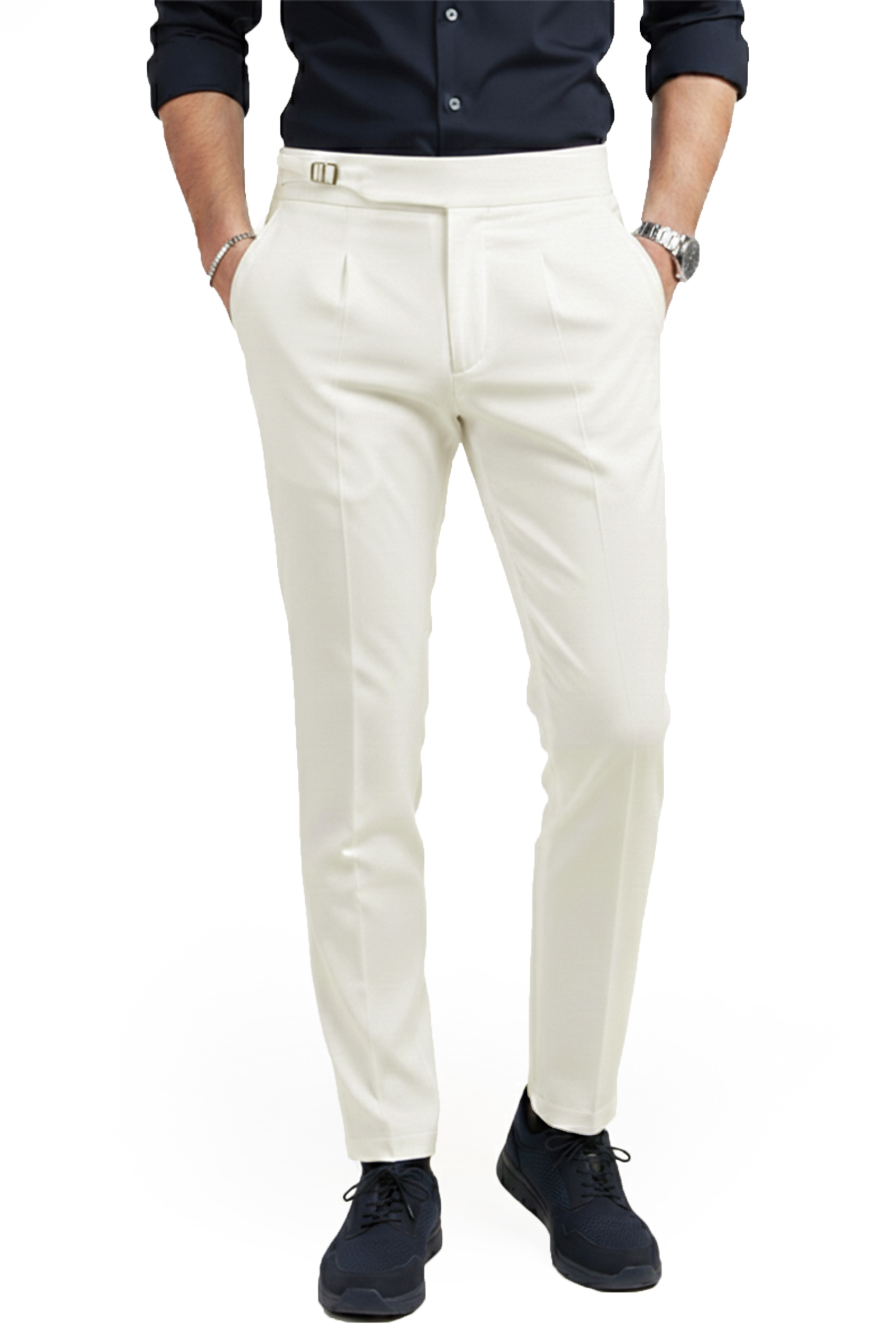 DeepSEA Beyaz Erkek Likralı İtalyan Kesim Pileli Kemer Tokalı Şık Kumaş Pantolon 2601020