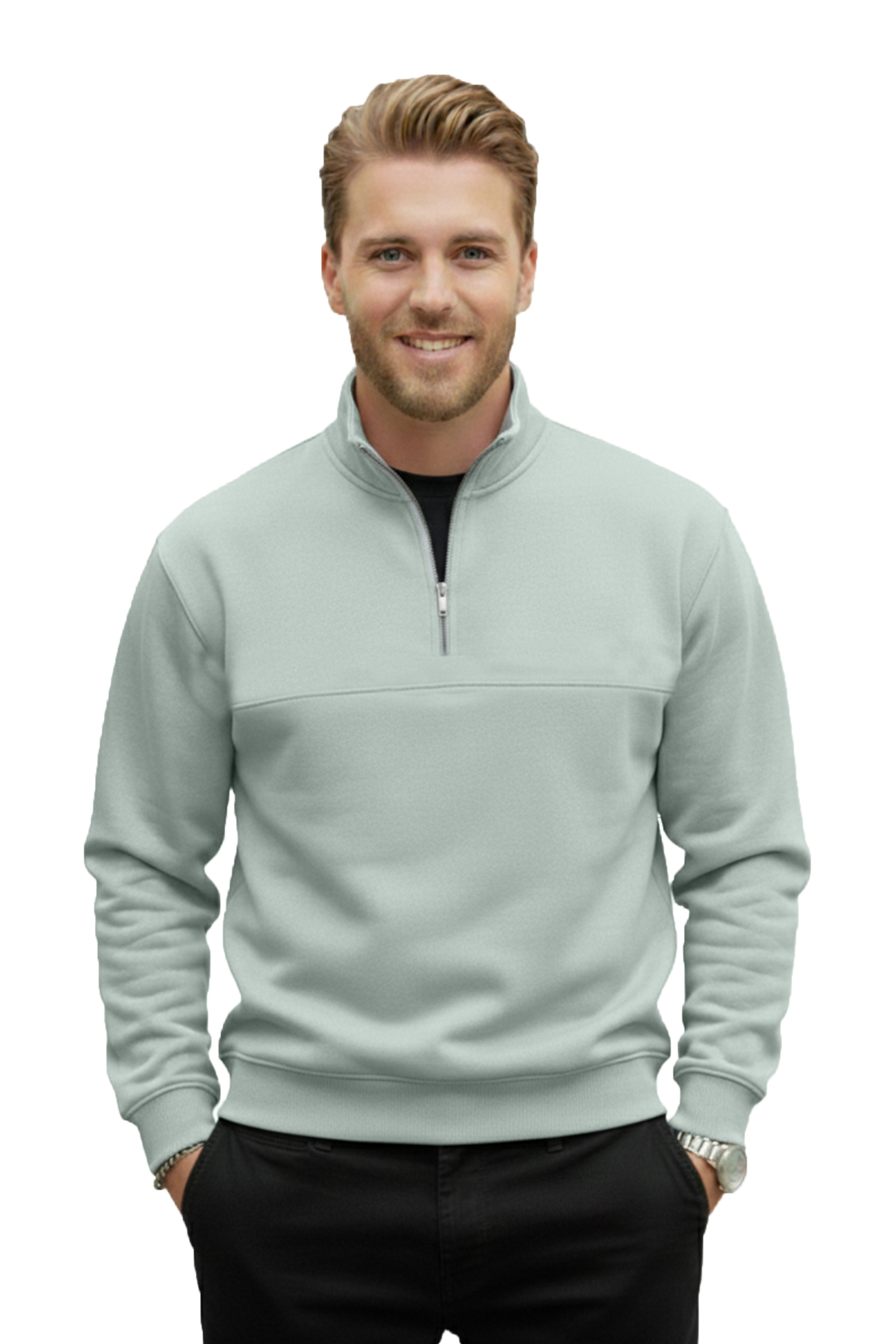 DeepSEA Mint Yeşili Relax Fit İçi Polarlı %100 Pamuk Yarım Fermuarlı Dik Yaka Sweatshirt 2600761