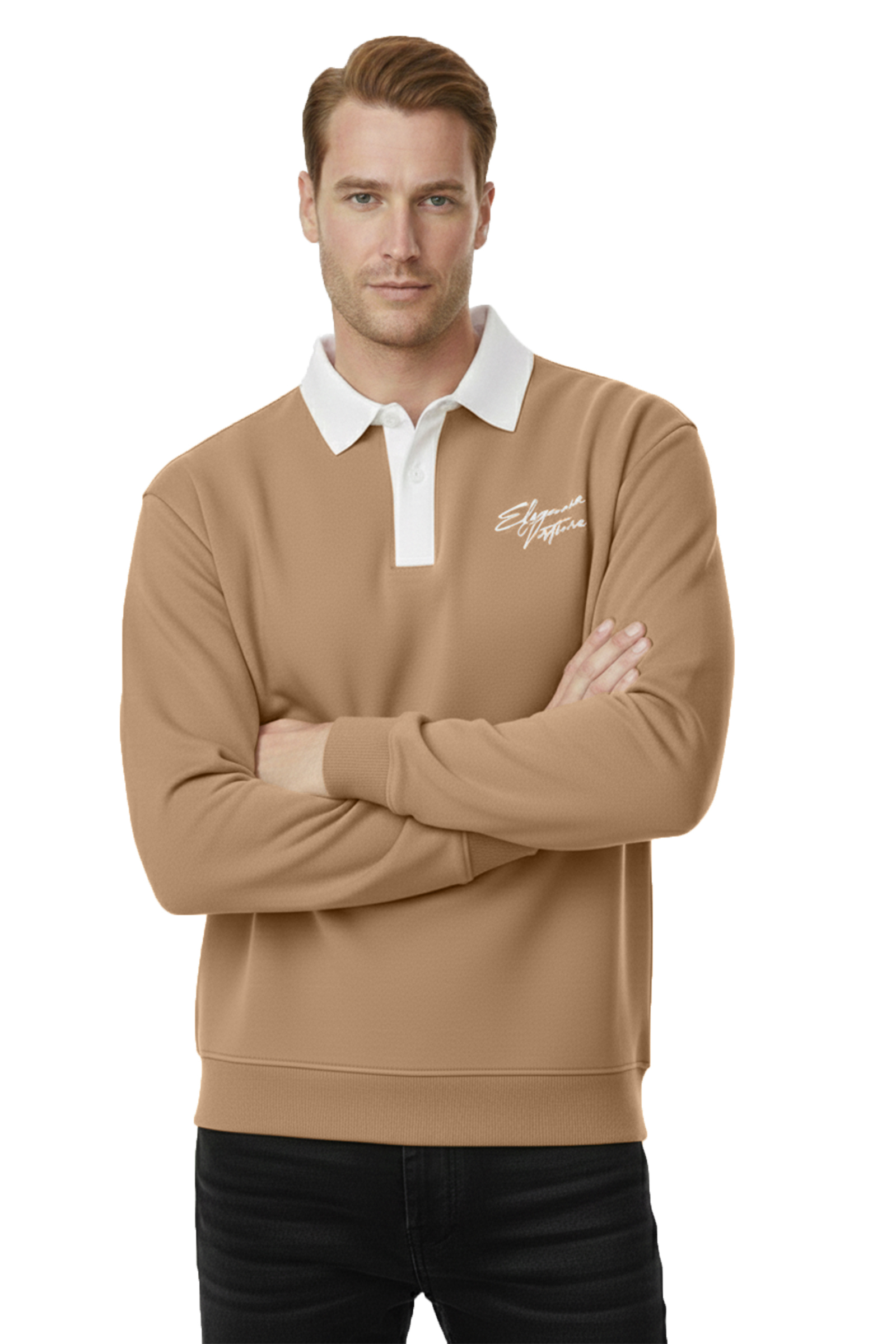 DeepSEA Camel Relax Fit İçi Polarlı Polo Yaka Sweatshirt – Pamuklu Kalın Sweatshirt 2600762