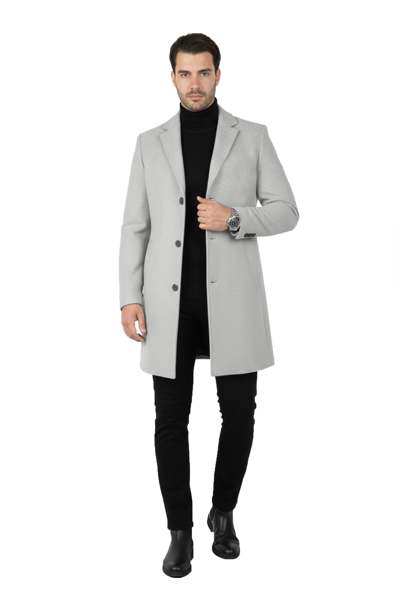 DeepSEA Gri Regular Fit Uzun Kaşe Kaban Yün Karışımlı Kışlık Şık Erkek Kaban 2407008