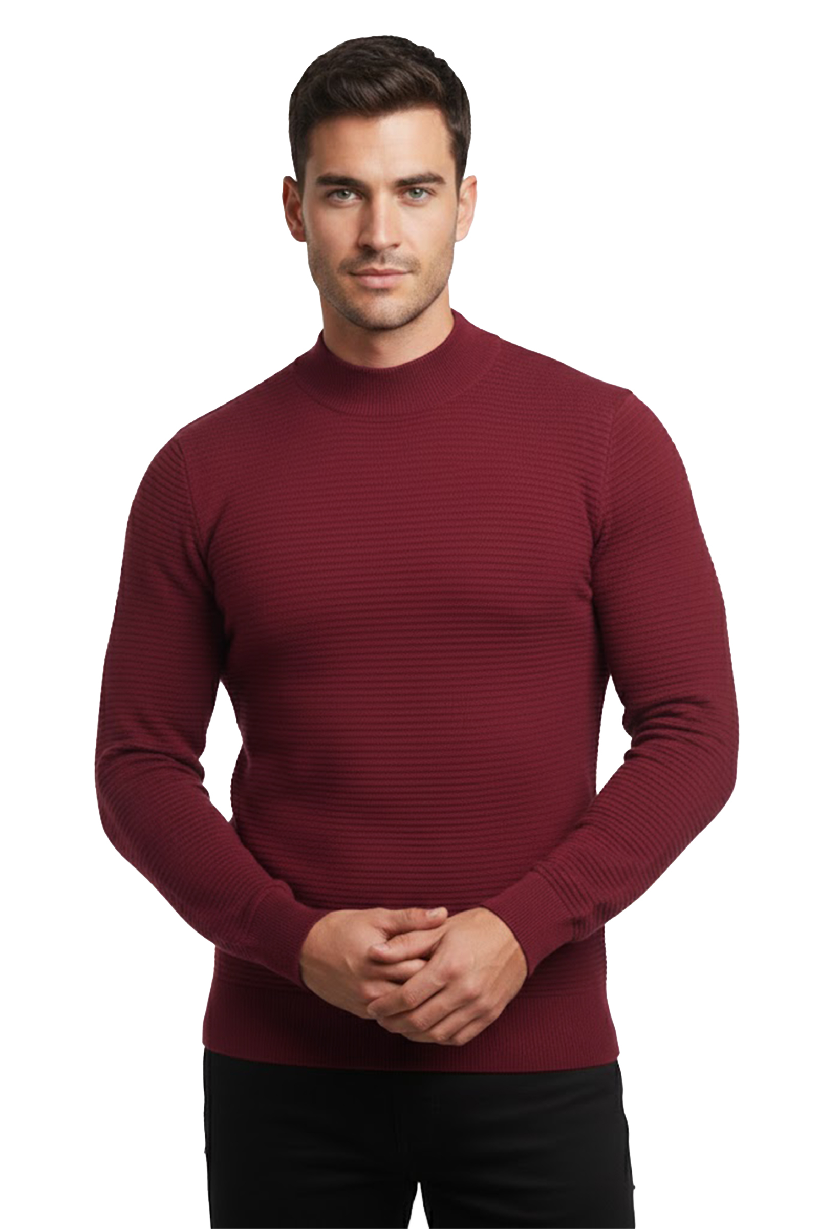 DeepSEA Bordo Dar Kesim Likralı Erkek Triko Kazak – Bisiklet Yaka Şık Tasarım 2505512