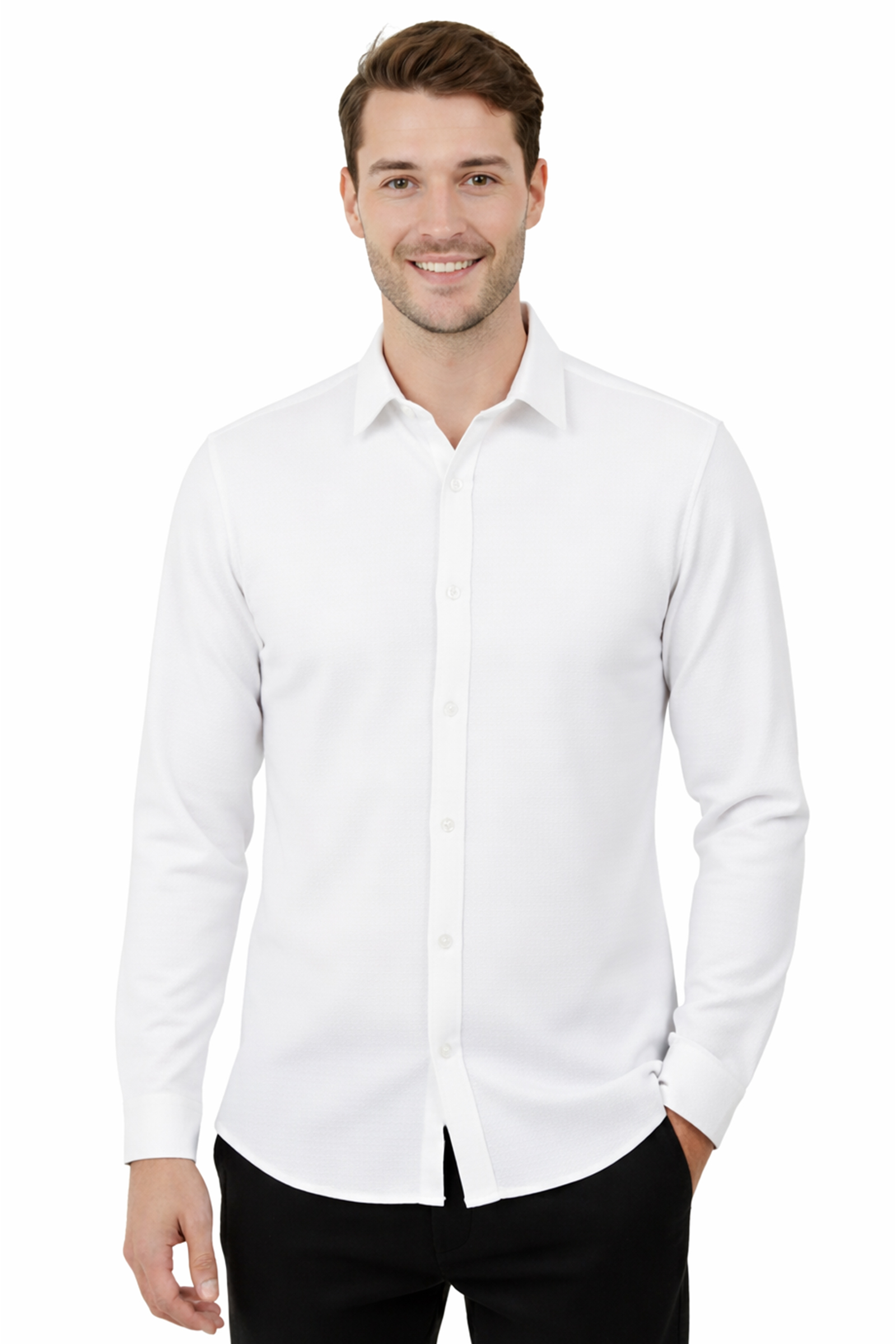 DeepSEA Beyaz Modal Kumaş Likralı Rahat Kalıp Kırışmayan Ütü Gerektirmeyen Erkek Gömlek 2602629