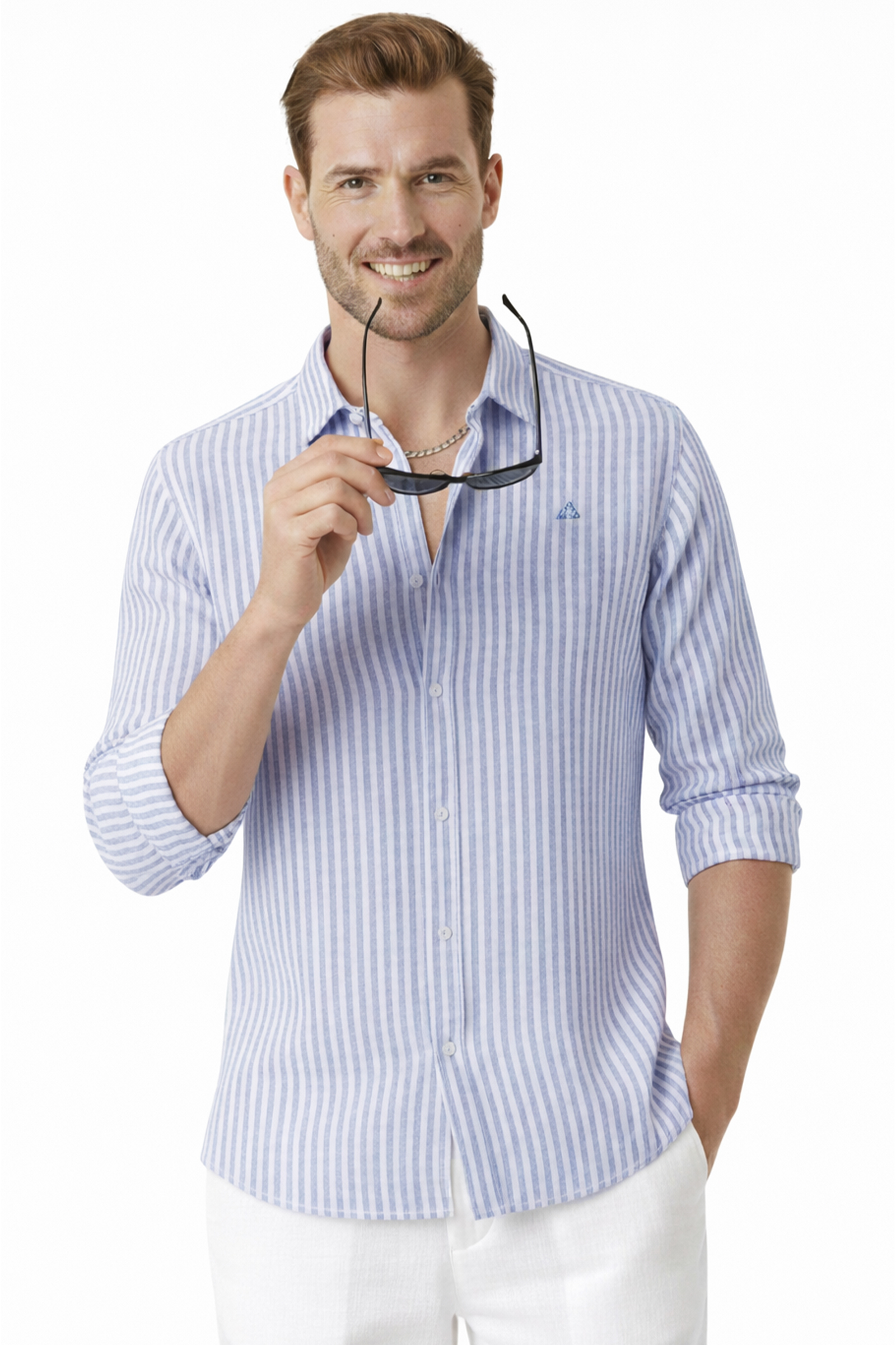slim fit erkek gömlek, çizgili erkek gömlek, pamuk erkek gömlek, dar kesim erkek gömlek, yazlık erkek gömlek, nefes alabilen pamuk gömlek, DeepSEA erkek gömlek, şık erkek gömlek, casual erkek gömlek
