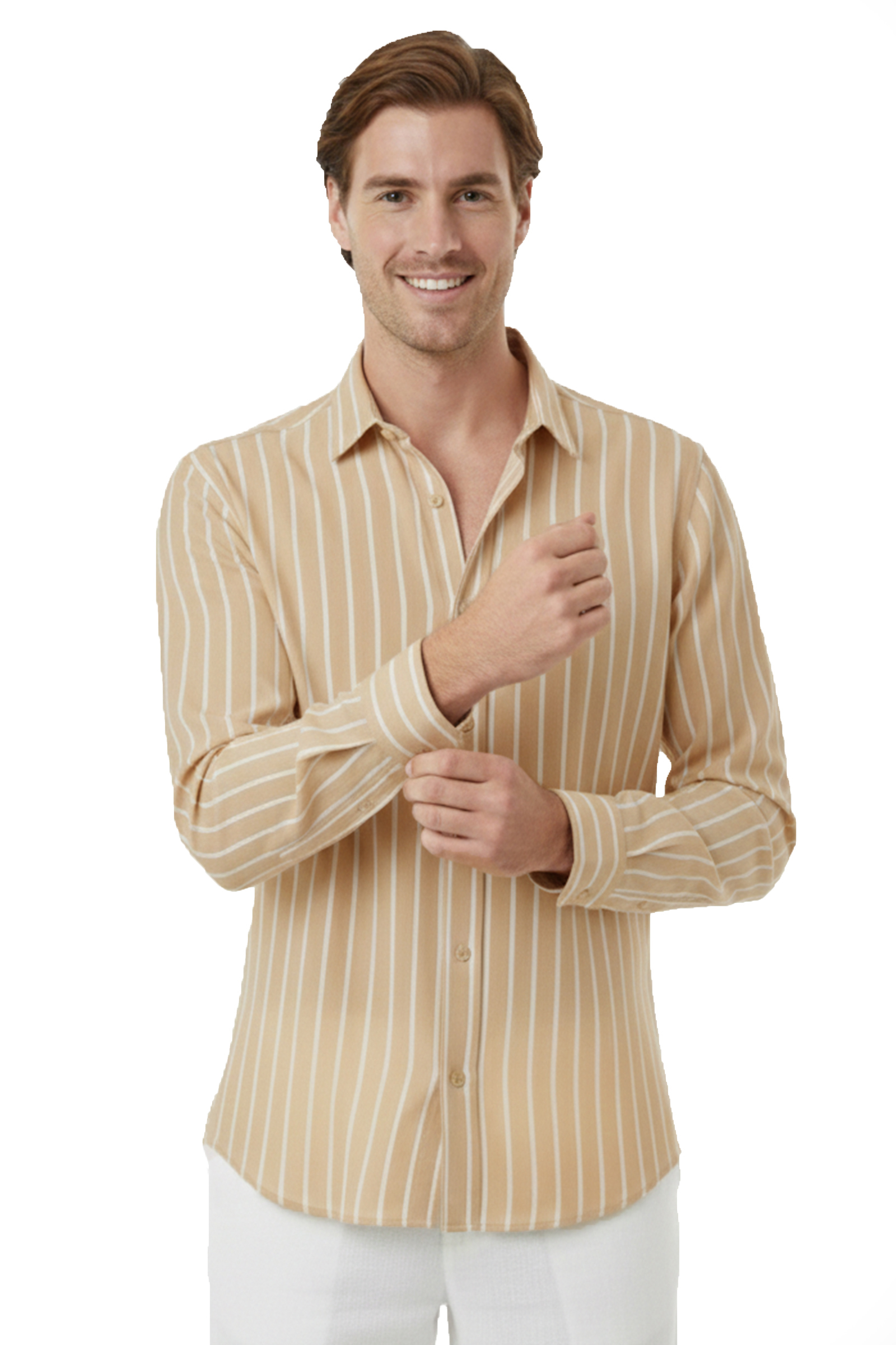 DeepSEA Bej Slim Fit Çizgili %100 Pamuk Erkek Gömlek – Nefes Alan Şık Günlük Gömlek 2602617