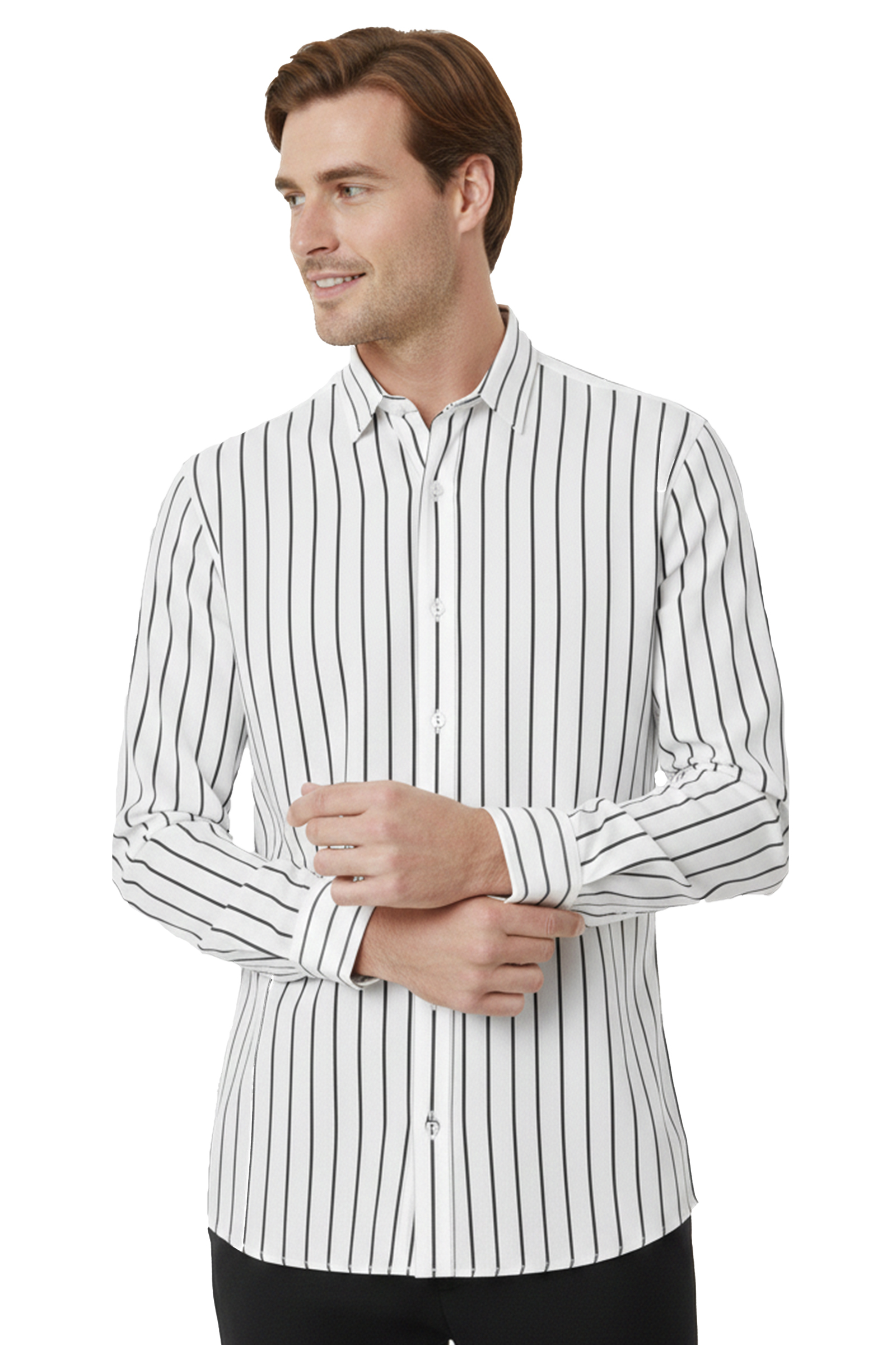 DeepSEA Beyaz Slim Fit Çizgili %100 Pamuk Erkek Gömlek – Nefes Alan Şık Günlük Gömlek 2602617