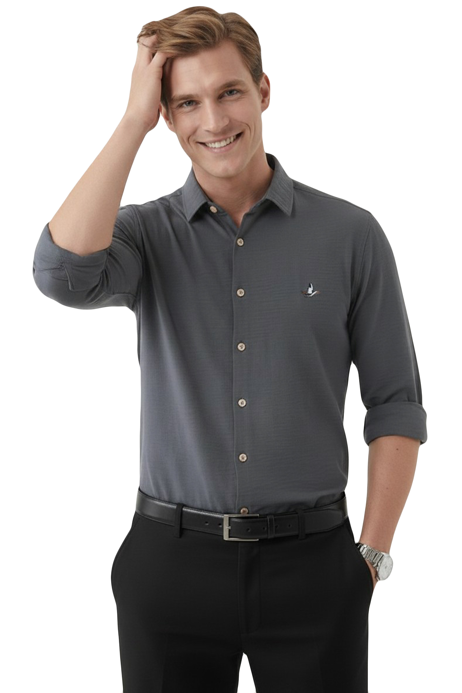 DeepSEA Antrasit Modal Kumaş Rahat Kalıp Armalı Erkek Gömlek 2602630