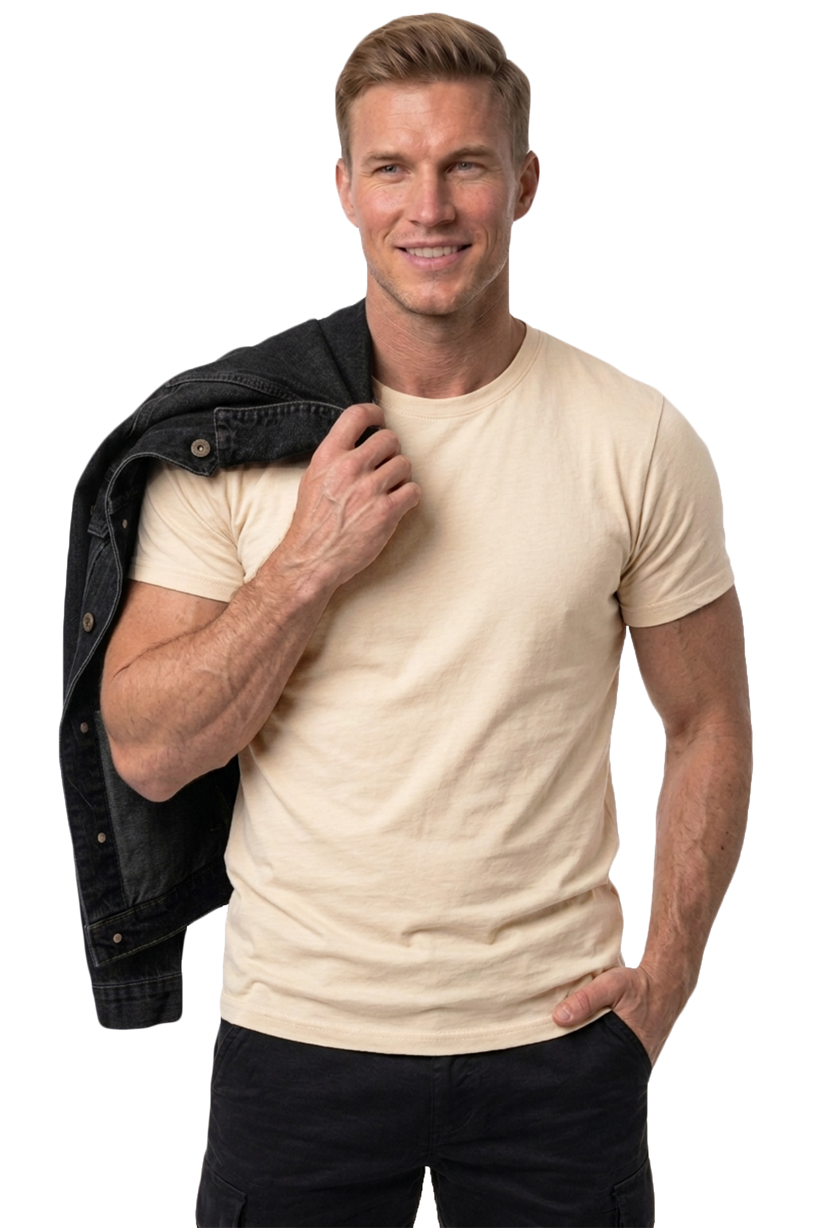 DeepSEA Krem Erkek/Unisex Slim Fit Dar Kesim Bisiklet Yaka Pamuklu Likralı Basic Tişört 1801131