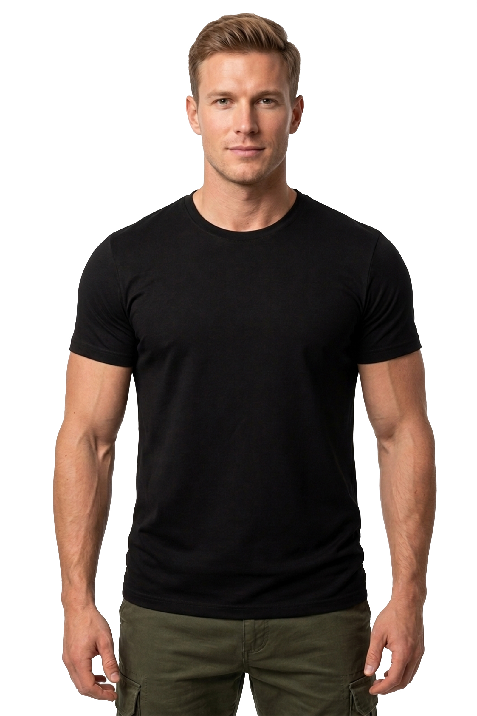 DeepSEA Siyah Erkek/Unisex Slim Fit Dar Kesim Bisiklet Yaka Pamuklu Likralı Basic Tişört 1801131