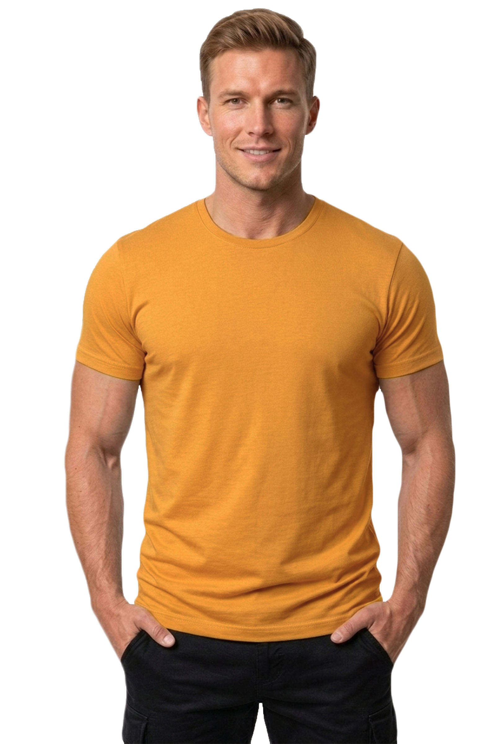 DeepSEA Hardal Sarısı Erkek/Unisex Slim Fit Dar Kesim Bisiklet Yaka Pamuklu Likralı Basic Tişört 1801131