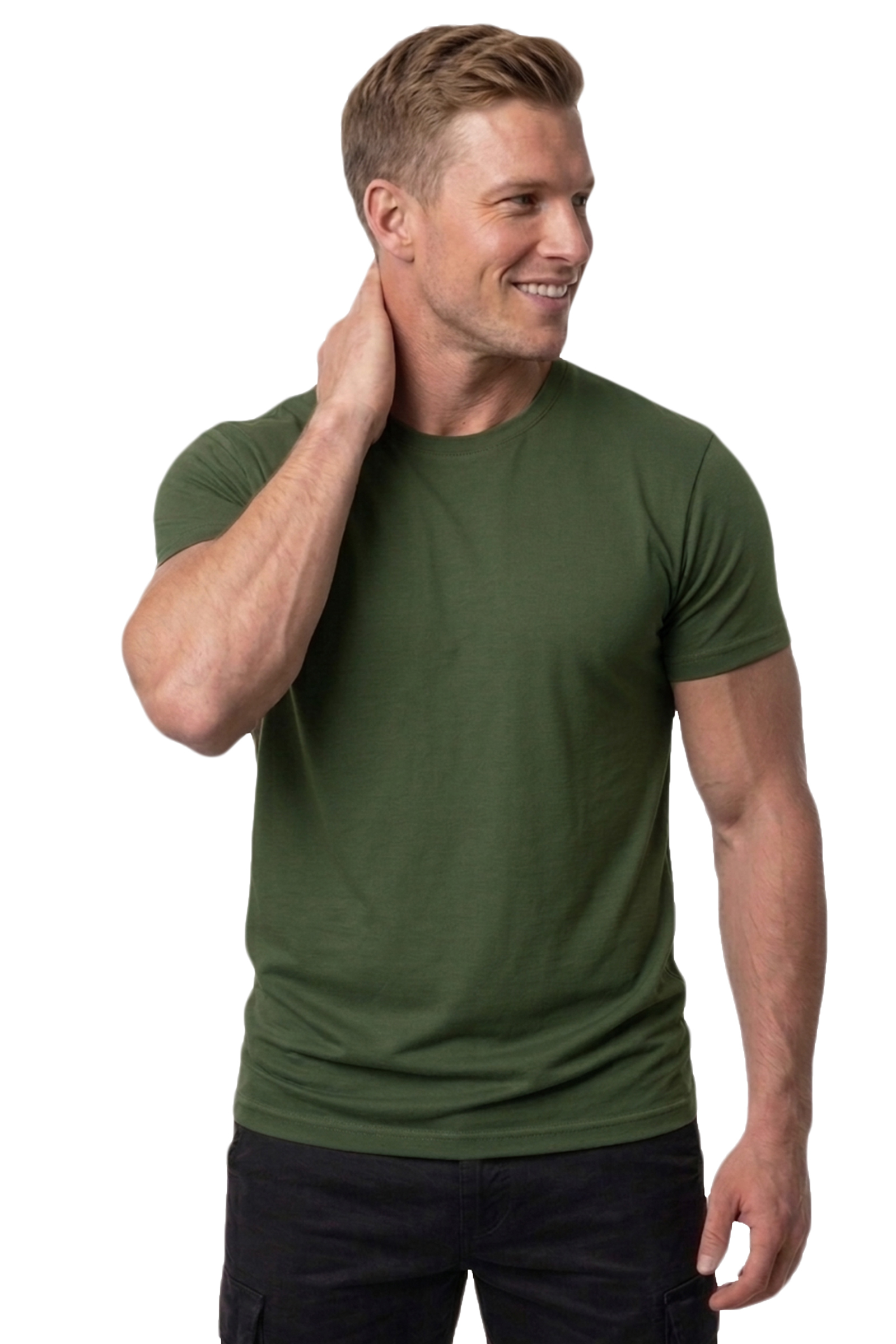 DeepSEA Haki Erkek/Unisex Slim Fit Dar Kesim Bisiklet Yaka Pamuklu Likralı Basic Tişört 1801131