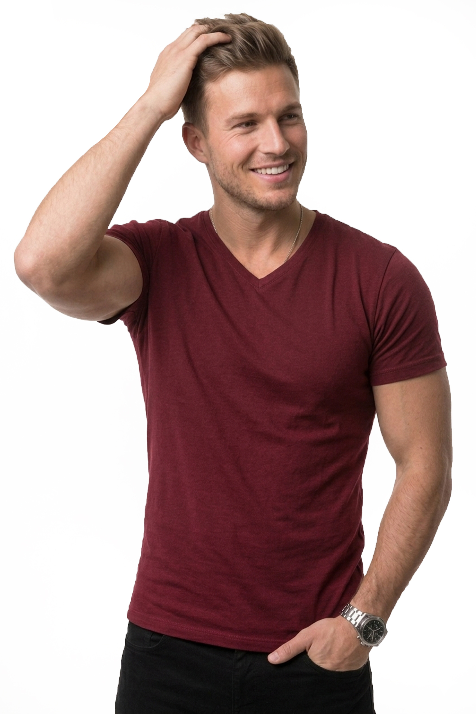 DeepSEA Bordo V Yakalı Likralı Dar Kesim Erkek Düz Tişört 1801165