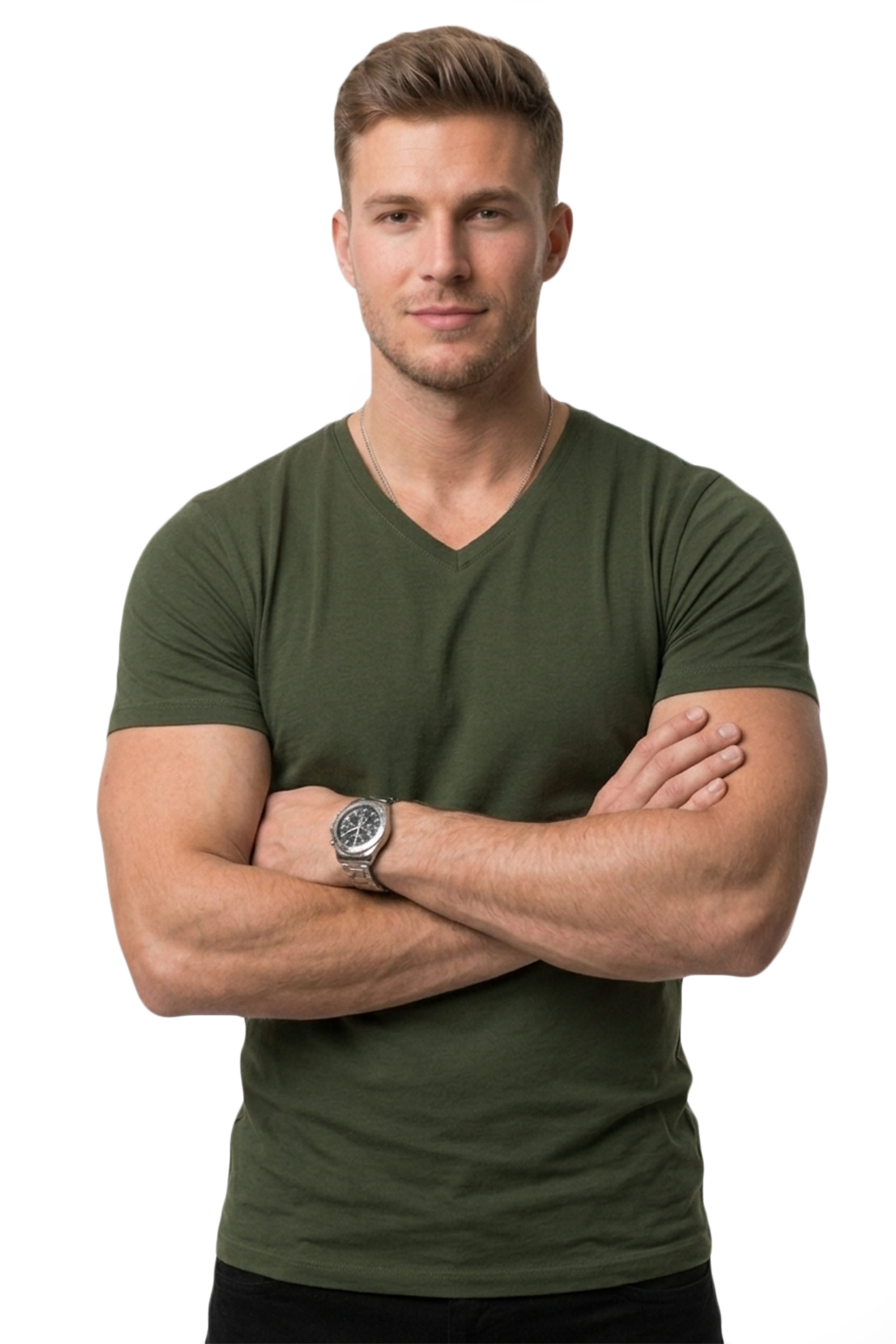 DeepSEA Haki V Yakalı Likralı Dar Kesim Erkek Düz Tişört 1801165