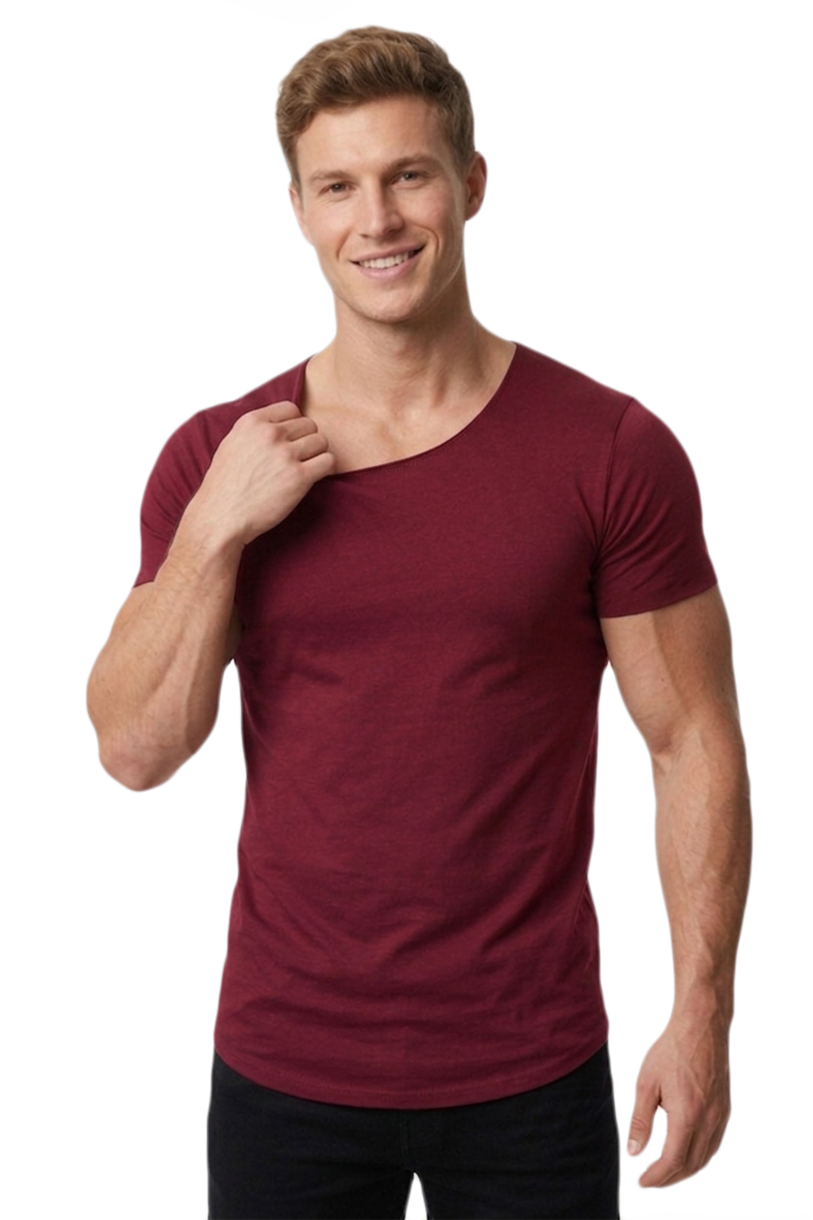 DeepSEA Bordo Geniş Yaka Likralı Tişört Oval Yaka Slim Fit Eteği Oval Açık Yaka T-shirt 1801199